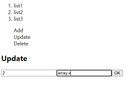 4일차 코드와 달라진 점은 특정 아이템 변경/삭제를 위해 ul이 아닌 ol로 UI를 변경한 점, UPDATE와 DELETE 로직을 추가한 점이다. 지난 번 포스트처럼 교재와는 다르게 list 자체를 state로 갱신하는 것이 아닌 버전 관리 기법을 이용하여 성능에 초점을 두었다.