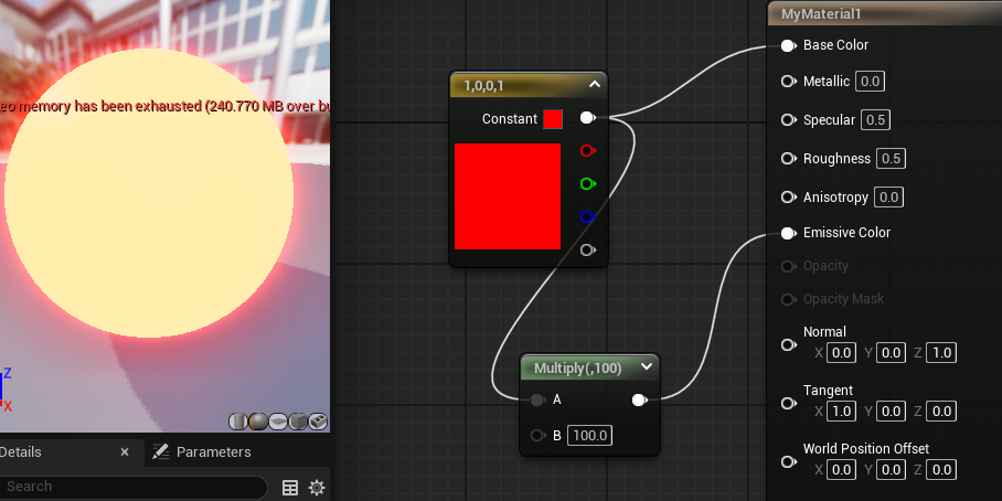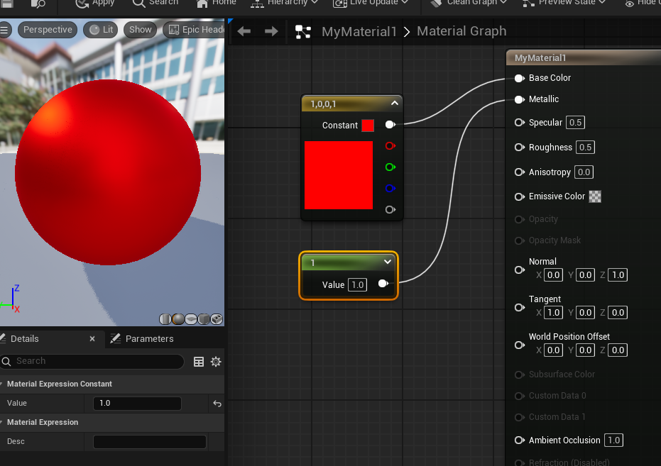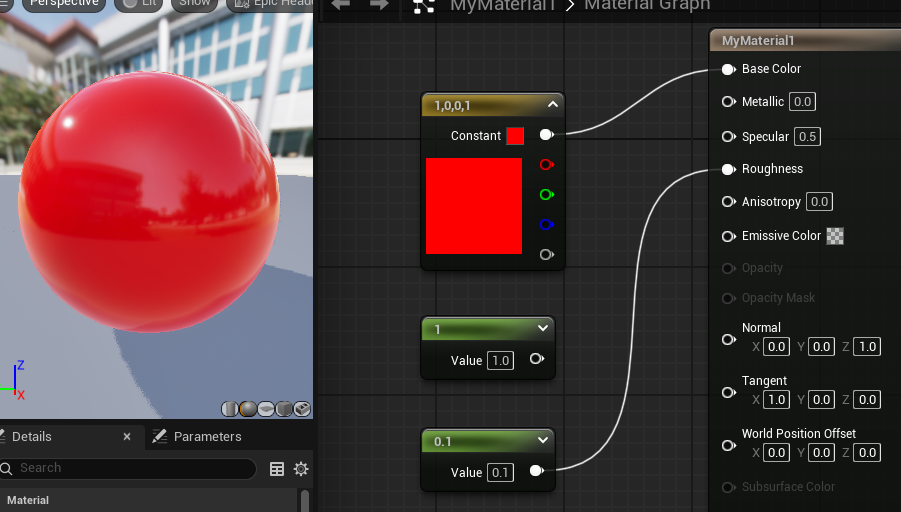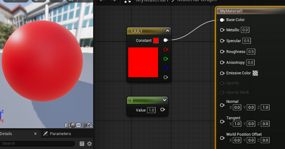 ※ 교재의 UE 버전과 내가 실습하는 버전이 다른데, 당시에는 상수 값을 입력하려면 무조건 Constant라는 노드를 이용해야 했던 것 같다. 내 실습 버전인 5.5.4는 상수 값은 각 노드에 직접 입력할 수 있는 란이 생겨서 매우 편하게 되었다. (아래 캡처 그림들 참조)