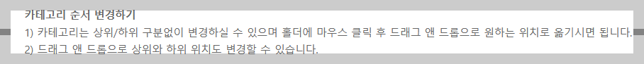 카테고리 관리 화면에 안내문이 연결되어 있는데, 거기선 드래그앤드롭으로 이동시키라고 나와 있다.