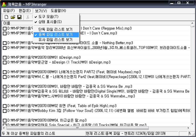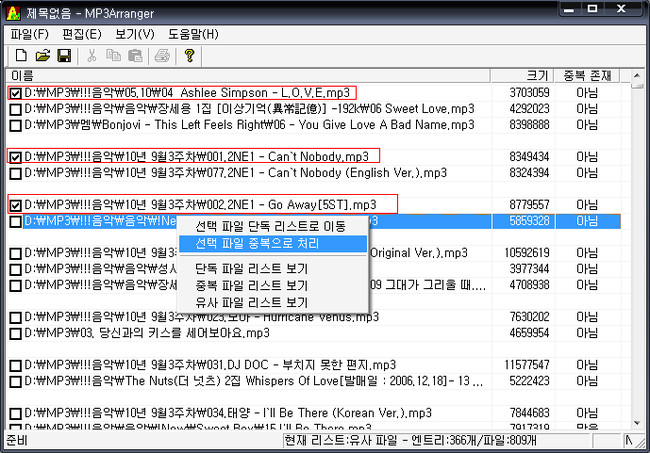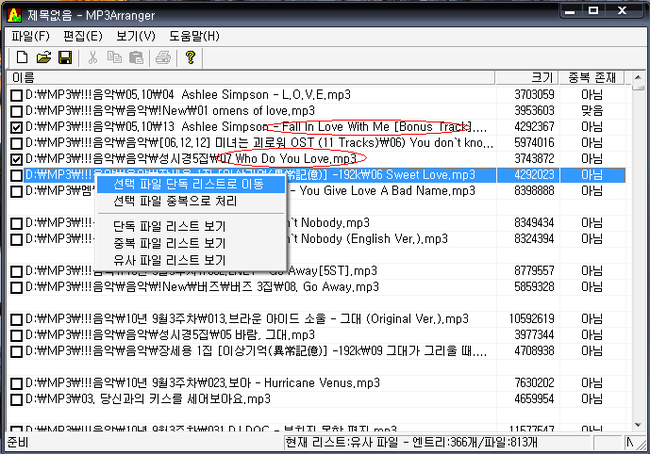 어쨌든, MP3 정리를 위해서는 유사 파일 리스트에 있는 파일들의 정리가 필요하겠죠.
