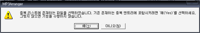 위와 같이, 이미 중복 리스트에 엔트리가 있는 것이므로, 선택 파일들을 기존 엔트리에 포함시키도록 할지를 물어봅니다.