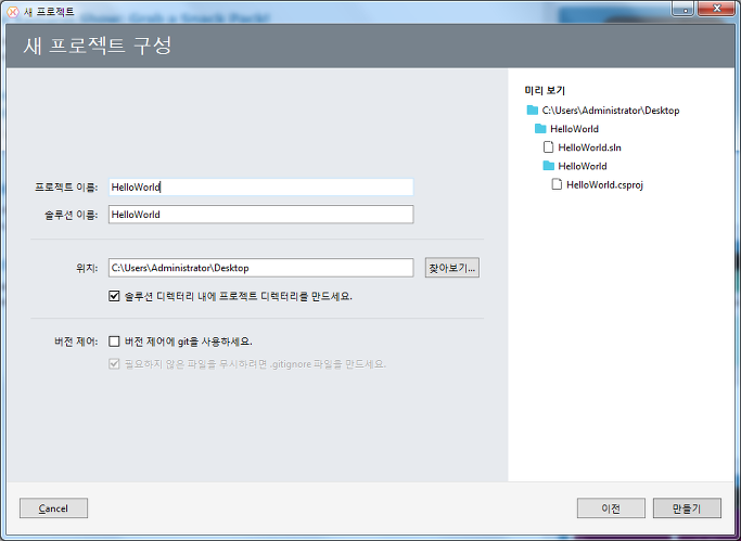 새 솔루션을 클릭하고, 아래처럼 선택하자.